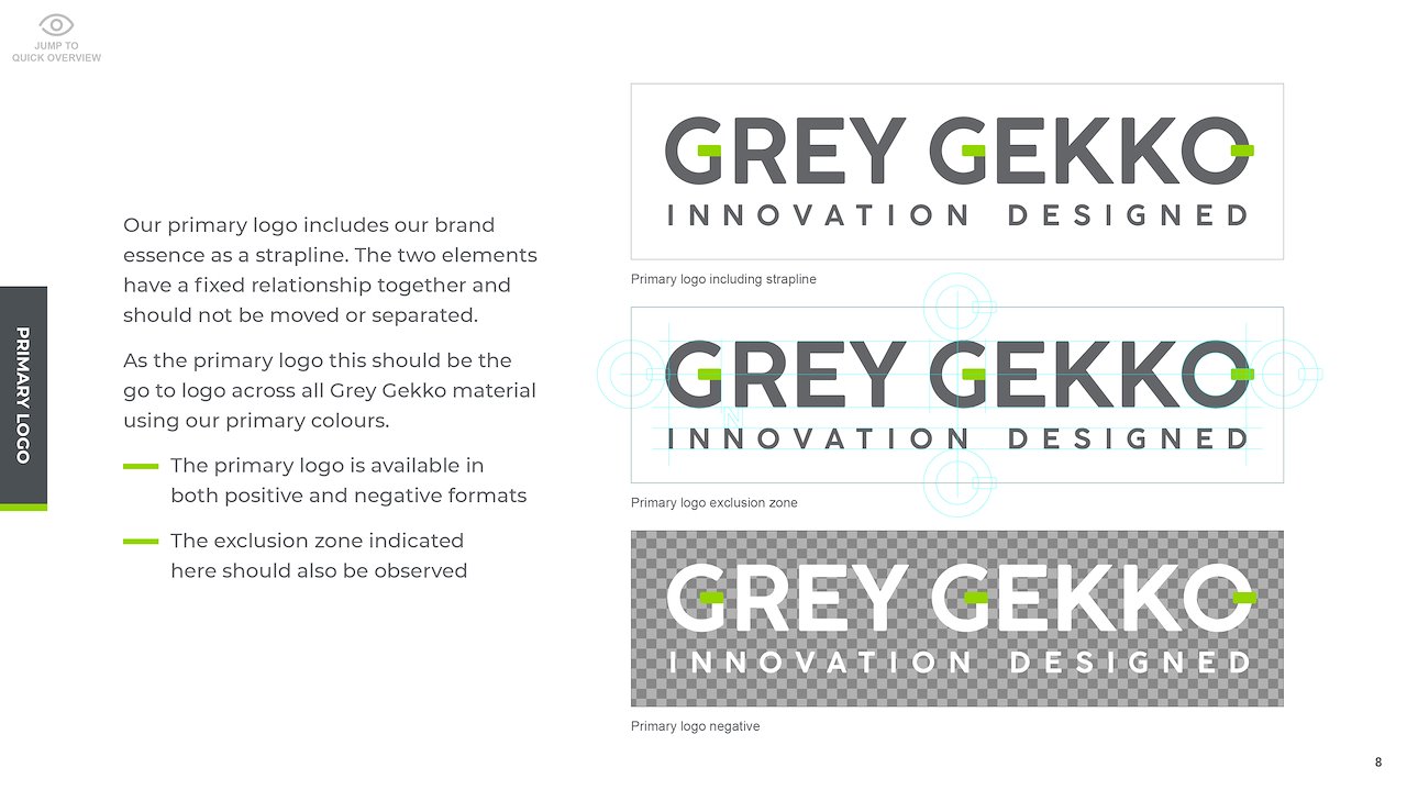 Grey Gekko are a small passionate product design business. But they are growing and needed a brand that could grow with them – one that reflected their professionalism and passion. I wrote and devised their core brand messages, voice and graphic style including a full suite of logos and icons – all wrapped up nicely in a brand book. Innovation Designed.